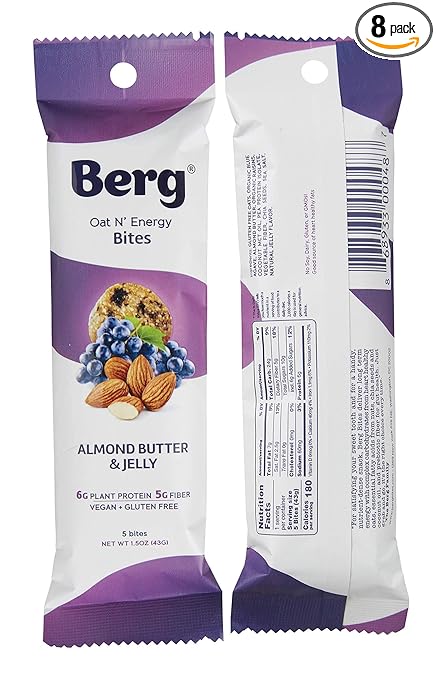 Berg Oat N' Energy Bites Almond Butter & Jelly, 1.5oz, 8-Pack